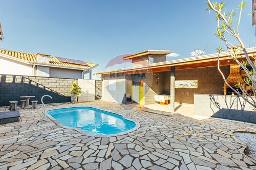 A casa conta com 2 dormitórios, além de um quarto de apoio para hóspedes, garantindo mais privacidade e conforto. A área de lazer é um grande destaque, com piscina, quarto de apoio na área da piscina e uma área gourmet completa, perfeita para momentos de convivência com família e amigos. O quintal amplo traz ainda mais possibilidades de lazer e paisagismo.