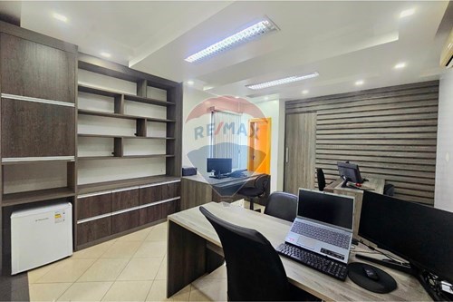 O ambiente conta ainda com duas vagas de garagem, garantindo comodidade para funcionários e visitantes, e está equipado com dois elevadores, proporcionando acessibilidade e agilidade no dia a dia. A designação de uso do terreno como "Área comercial" assegura que o local é adaptado para atender diversas necessidades empresariais.