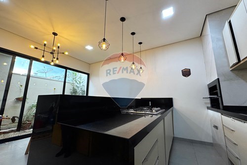 Cozinha integrada à Área Gourmet com móveis planejados, Ilha com fogão cooktop de Inox Electrolux, coifa, churrasqueira revestida de porcelanato; iluminação com pendentes; porta de correr na esquadria de alumínio;