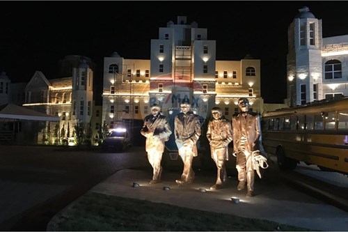 Réplica da famosa Abbey Road, com estátuas dos Beatles