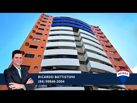Apartamento com 98 m² no Cond. Brisa de Ponta Negra em Capim Macio, lado sombra, andar intermediário, distribuído em sala 2 ambientes com varanda, cozinha com armários projetados, área de serviços, 3 dormitórios com 1 suíte e 2 semi-suítes, lavabo, dependência de empregada e 2 vagas de garagem cobertas.