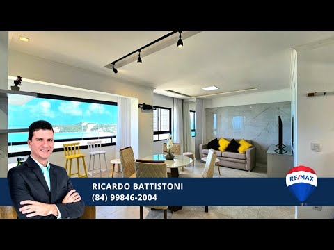 Apartamento com linda mobília no Cond. Luxor em Ponta Negra c/ 55 m², todo voltado para o sol nascente, super ventilado, andar alto, vista espetacular para o mar e Morro do Careca, distribuído em sala 2 ambientes, cozinha americana c/ área de serviços, 1 suítes, banheiro social e 1 vagas de garagem.