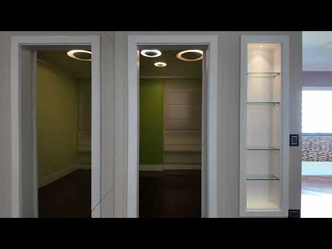 Como em todos os cômodos desse apartamento, já dispões de iluminação com acabamento de bom gosto e também possui, em uma das paredes, uma perfumaria embutida com prateleiras de vidros transparentes e temperados, bem como iluminação decorativa própria.