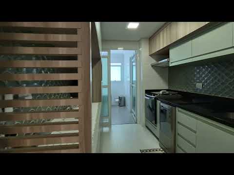 Conta com living amplo para dois ambientes, varanda envidraçada que pode ser integrada ao living, lavabo, cozinha moderna e equipada, área de serviço com despensa e suíte master com ar-condicionado.