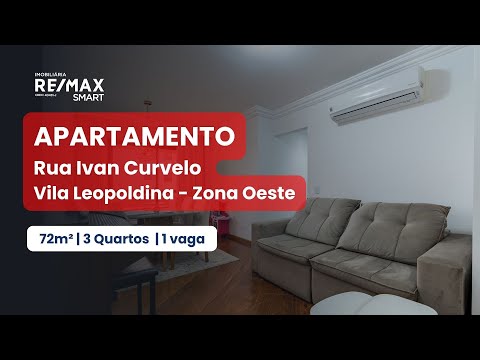 Apartamento à venda na Vila Leopoldina, 76 metros, 3 quartos, sendo 1 suíte, 2 banheiros, área de serviço e 2 vagas.