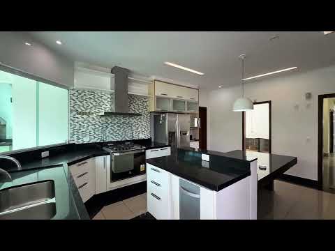 Uma casa do jeito que você sonhou: são 511 metros quadrados, uma varanda com um jardim florido, além de piscina e churrasqueira privativa para aproveitar o seu fim de semana com todo conforto. O living é súper espaçoso, todo revestido de piso de madeira, dividido em 3 ambientes: estar com lareira, jantar e tv. O escritório em espaço silencioso, ao lado da sala, é o lugar perfeito para você trabalhar. Lavabo decorado para receber as visitas. A cozinha é planejada com bastante marcenaria, além de 2 despensas, fogão embutido e bancada de apoio que facilita o seu dia dia. Lavanderia com máquina de lavar e secar, e dependência de funcionários completa.