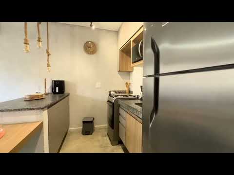 A área social integra sala de estar aconchegante com a cozinha, criando um ambiente moderno e convidativo para reunir família e amigos. O imóvel conta ainda com lavabo, área de serviço reservada e excelente padrão de acabamento.