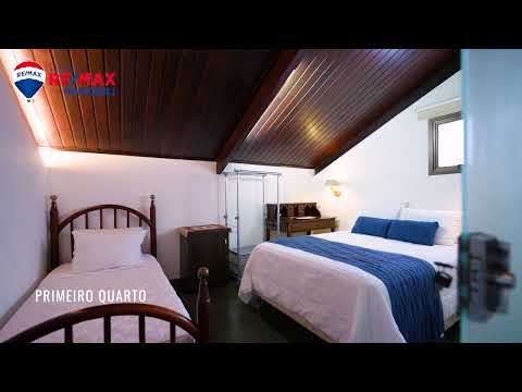 O pé-direito elevado valoriza a arquitetura e dá acesso a um mezanino aconchegante que abriga dois dos cinco quartos, interligados por uma confortável sala íntima. Vale destacar que há uma espaçosa área , atualmente utilizada como depósito, onde é possível construir outro banheiro para um desses quartos.,