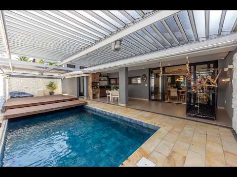 No térreo, o destaque vai para o amplo living para 3 ambientes, com integração inteligente e elegante. A cozinha planejada, totalmente equipada, se conecta ao living pela sala de jantar e também se integra à parte de serviços, com dependência completa. Para receber, o espaço externo é especialmente agradável: piscina com deck, área gourmet com churrasqueira e teto retrátil, que permite aproveitar o espaço em diferentes climas e momentos do dia.