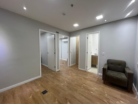 A sala possui, recepção com ar condicionado, armário deposito, duas salas privativas, cada uma também com ar condicionado e varanda em uma das ssalas.