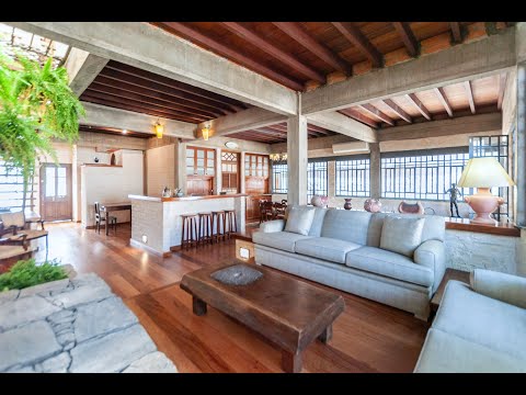 Destaque para a charmosa lareira, o jardim de inverno. A arquitetura vernacular aplicada aqui é um exemplo de como adaptar a moradia ao clima tropical, garantindo conforto térmico durante todo o ano.